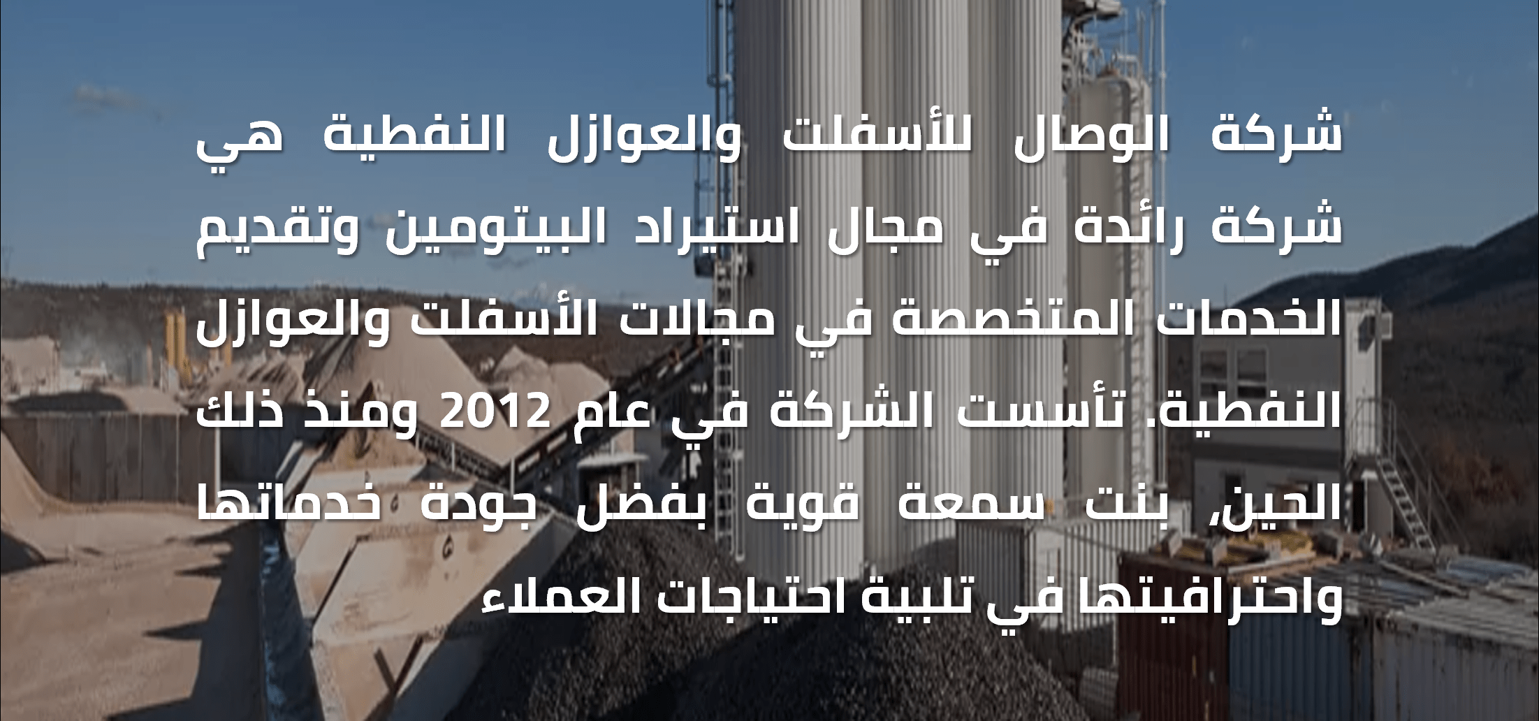 شركة الوصال تعتبر رائدة في مجال استيراد البيتومين وتوفير الخدمات ذات الجودة العالية في مجالات الأسفلت والعوازل النفطية. نحن نفتخر بتاريخنا الطويل في تلبية احتياجات عملائنا وتقديم الحلول المبتكرة في هذا المجال